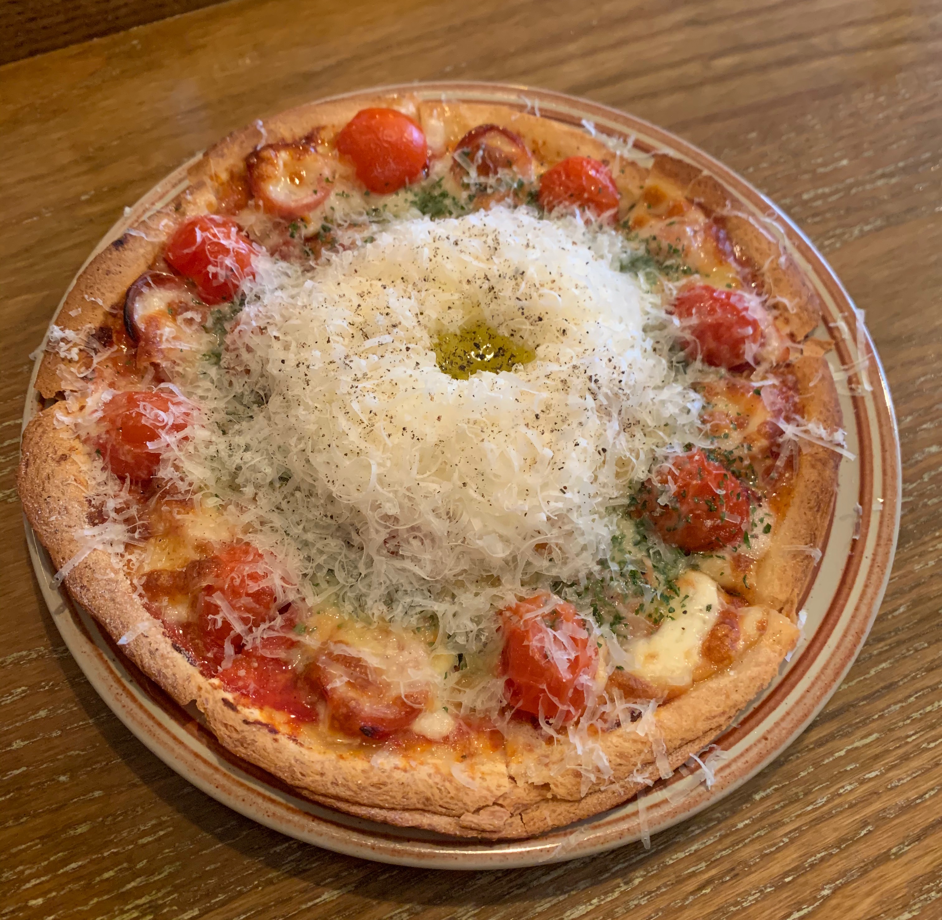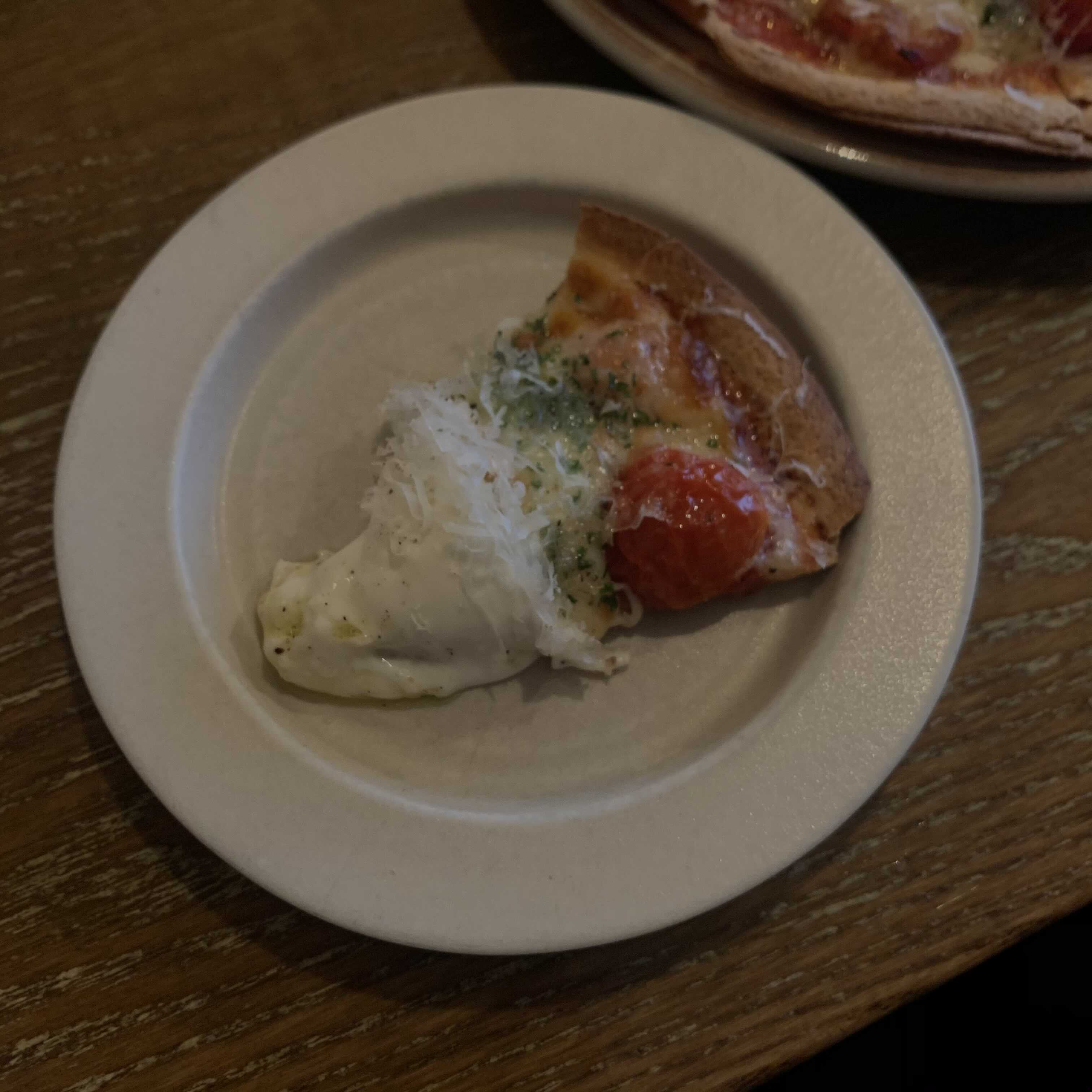 피자 위에 치즈랑 크림이 ...